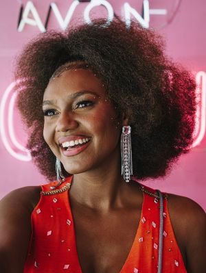 Já no segundo dia de festa, a ex-BBB Natália Deodato marcou presença no espaço de Avon com olho tudo, boca tudo. A Paleta de Sombras para Olhos Bonita (R$ 79,99) permite a criação de um look dramático e com brilho no centro do olhar, como pede o Carnaval, e o Batom Ultramatte (R$ 26,99) na cor Cereja entrega a aparência femme fatale da produção da Naty.
