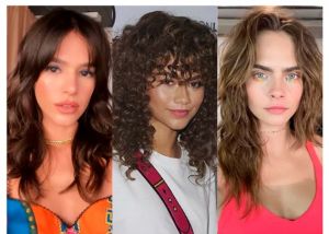2. Shaggy hair: o icônico estilo de Brigitte Bardot (anos 60) continua a inspirar cortes femininos. E o shaggy hair é um corte feito em várias camadas e com efeito repicado, principalmente na parte da frente. A ideia é causar um aspecto desarrumado na medida certa. Em sua versão clássica, os cabelos ficam na altura dos ombros, com franja na altura das sobrancelhas, levemente mais longa nas laterais. Outro componente deste corte cheio de estilo é a franja cortininha, que fica dividida ao meio e tem as laterais levemente mais compridas.